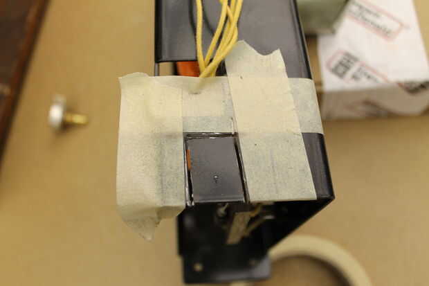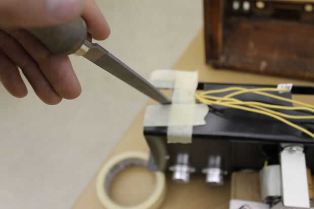 Línea de un chasis de amplificador de guitarra para reducir RF (3 / 5 paso)
