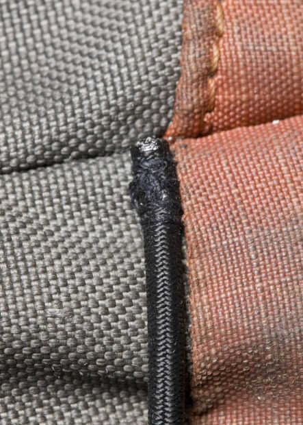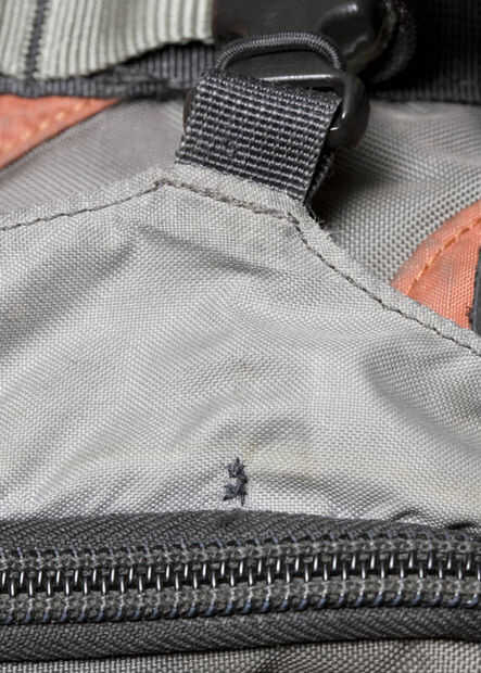 empecé poniendo la aguja directamente a través del cordón y virar a la solapa de la mochila. A lo largo de la lo costura probablemente funcionó la aguja a través del cable sí mismo 4 - 5 veces y también alrededor de él varias veces para atar los extremos de hilo flojo. Estoy seguro de que las personas con mejores habilidades de aguja pueden hacer un mejor trabajo así que básicamente estoy mostrando cómo escaso apego real es necesario para asegurar el cable.