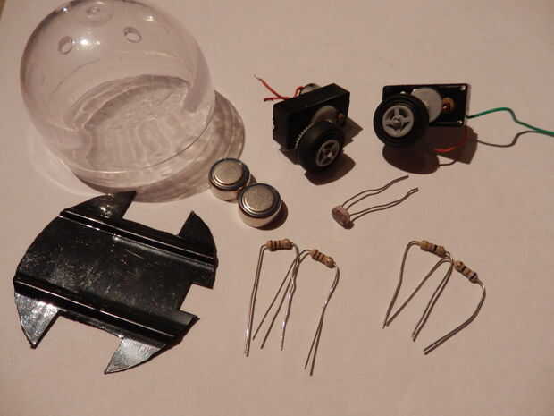 baterías (entre 6 y 12 voltios dependiendo del tamaño del robot y motor, utiliza dos pilas de botón de 3v).