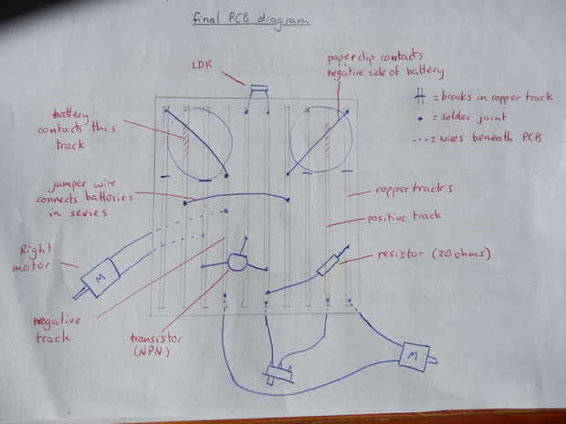 Esto significa que el motor izquierdo quiere recibir una corriente constante de acerca de 0,3 amperios. podemos resolver lo que la resistencia tiene que ser poniendo los datos en la ecuación r = v / i (donde son = resistencia, v = voltaje y I = amperios) para: 6/0.3 = 20ohms. Necesitamos una resistencia de 20 ohmios.