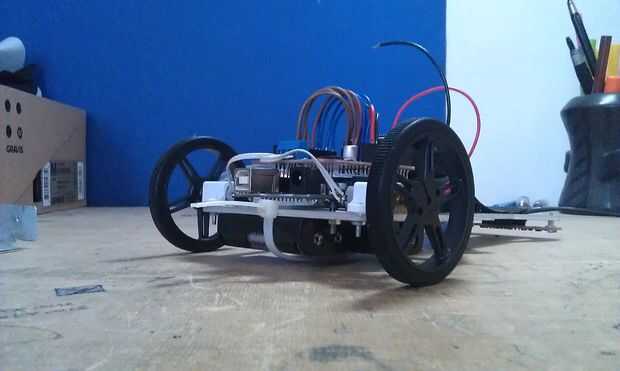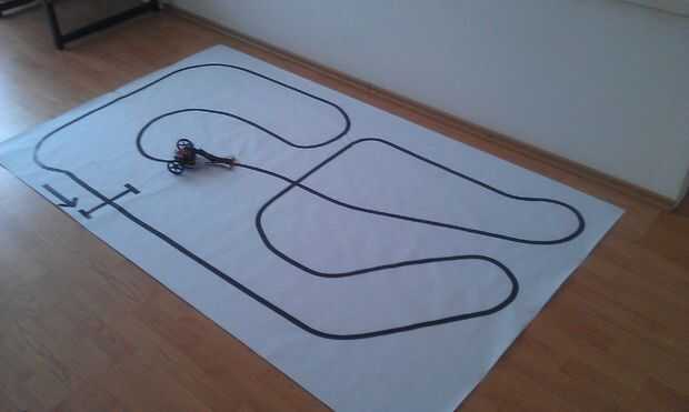 Este robot utiliza un algoritmo de control PID para seguir autónomamente un camino negro sobre un fondo blanco. Utiliza una matriz de ocho sensores de reflectancia IR para determinar la posición del robot en la línea, y el microcontrolador Arduino Na