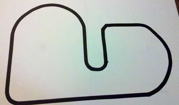 Una línea que sigue el curso se puede crear rápidamente utilizando cartulina y cinta aislante. Es una buena idea para sacar el curso con una pluma o lápiz primero.