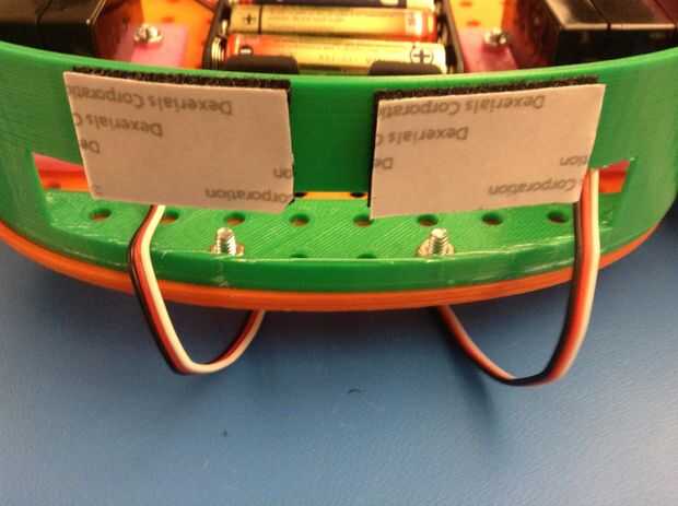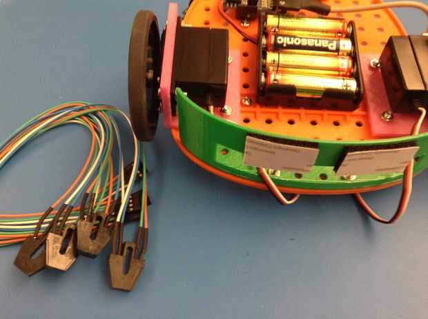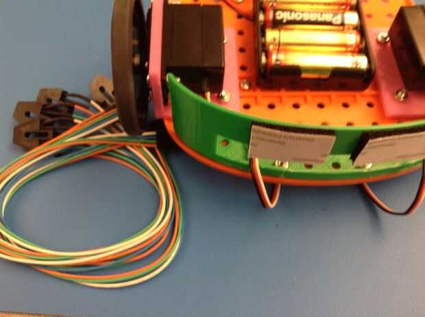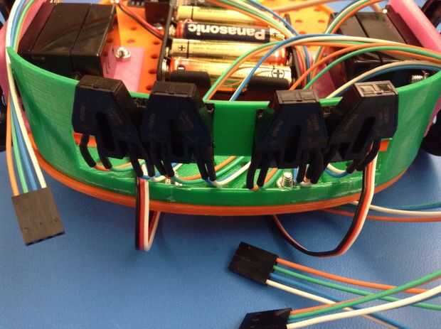 Conecte los 4 sensores IR al Velcro, tire de los cables a través de la ranura en el soporte del Sensor.