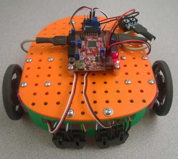 En este punto todo debería estar (casi) todo listo para correr! Después de que el LED verde deja de parpadear, oprima BTN2 en el módulo de botón para iniciar y detener el robot!