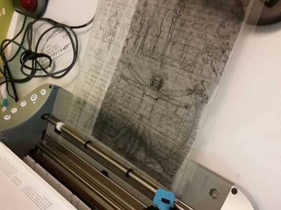 Asegúrese de que el lado impreso es no boca abajo en la estera o que la tinta se pegue a él y usted no tendrá la imagen en la transparencia.