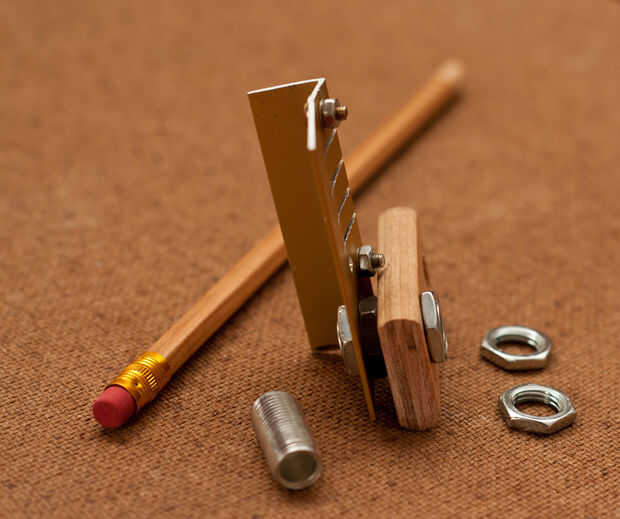 Un hueco roscado Tubo actúan como pivote, el otro es donde se inserta el soporte de la botella. Tenga en cuenta que he añadido una tuerca más ampliada entre perfil y madera, que mantiene la varilla de madera no influenciada por el grado de hoja.