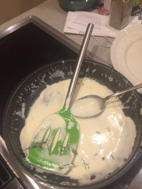 he decidido hacer una salsa blanca. Tome mantequilla y alguna crema de leche y mezcle en la cacerola (después de quitar los pescados y mariscos). Dejar derretir y tirar en algunas cebolletas o limoncillo. Cebolla ir bien con esta salsa, pero asegúrese de que están muy picados.