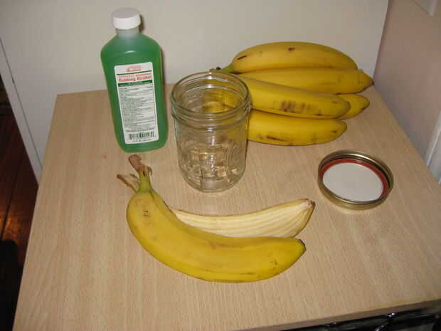 Necesita wintergreen isopropanol (alcohol isopropílico), tarro de cristal con tapa y cáscaras de plátano.