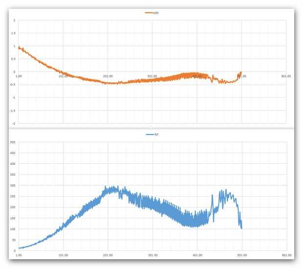 Usted debe recordar que este "instrumento" es hecho en casa y que no hay ninguna compensación de ruido y como tal, las señales son muy desordenadas, sin embargo se puede ver que con los datos de ser específicos para este conjunto cada filtro da un perfil muy diferente, así que si tienes un conjunto de estándares conocidos debe ser posible identificar una muestra de composición desconocida o incluso tener una idea de la concentración.