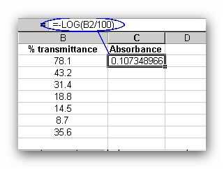 Los datos para la transmisión se calcularon con respecto a la trayectoria de referencia (uno con ningún filtro insertado), una vez que se calcula la absorbancia puede calcularse de la ecuación:-