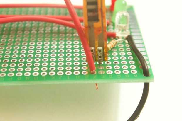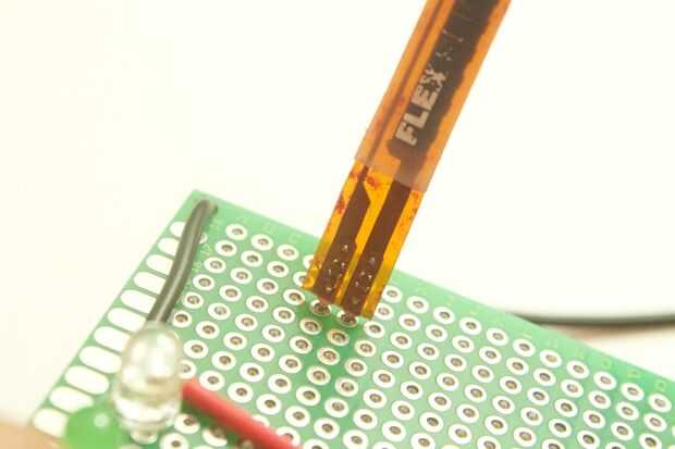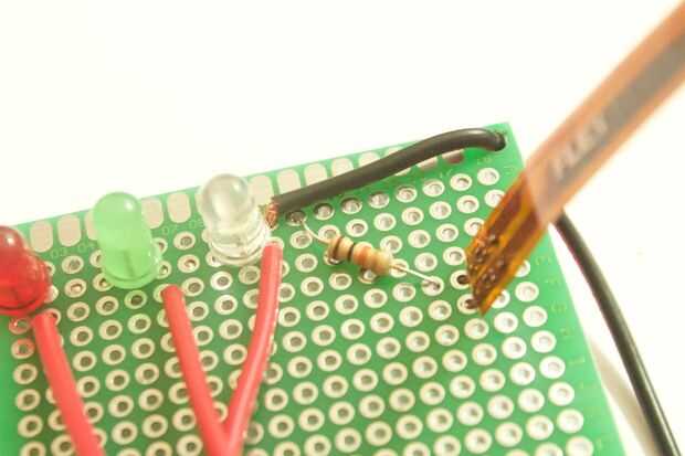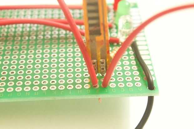 4. Conecte los cables a VCC y la salida analógica del sensor flex.