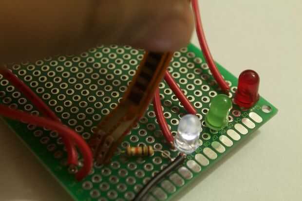 ¡ Funciona! Cuando usted doblar el flex sensor luz LED se ilumina dependiendo de la cantidad de curva.