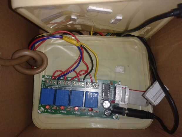 1) primero el módulo de relé utilizando un adhesivo de doble cara de la goma y conecte la fuente de alimentación.