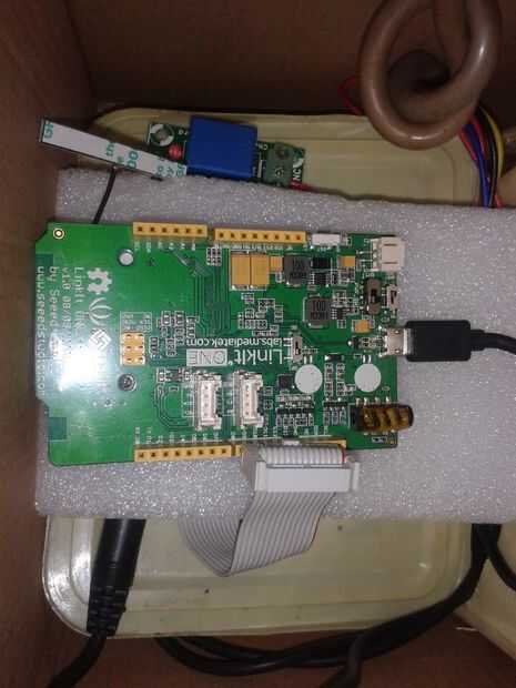 7) Conecte la clavija de adaptador energía a la Linkit uno.