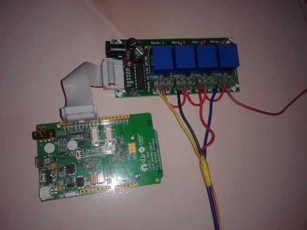 1) Conecte un módulo de relé de 12V con 4 relés para el Linikit uno.