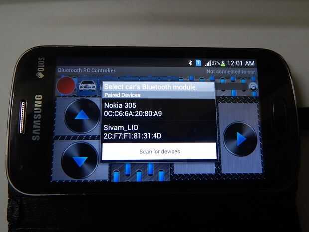 3) ya está abierta la aplicación Arduino Bluetooth RC coche del teléfono móvil.