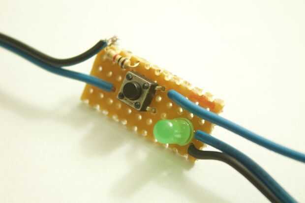 5. listo con el interruptor, cortar las patas del led corto y colocar en el tablero de perf.