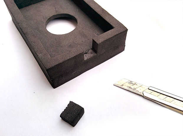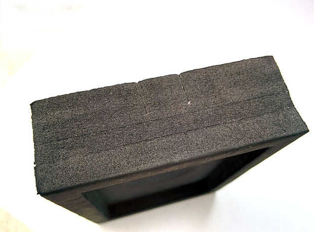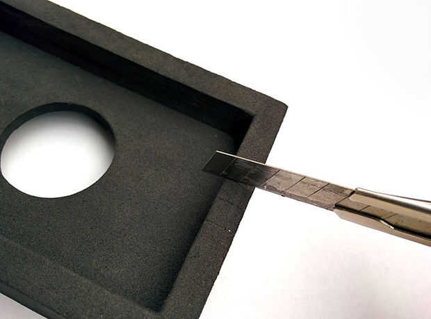El tercer corte es un poco más complicado. Con la ayuda de un cuchillo afilado mucho. con la punta de la cuchilla toque donde desee corte empezar (donde terminó uno de los dos cortes anteriores) y presione en la espuma. No utilice demasiada fuerza ya que no desea dañar la espuma. Repetir este proceso hasta llegar a través de la pared de la espuma y puede salir ese pedacito.