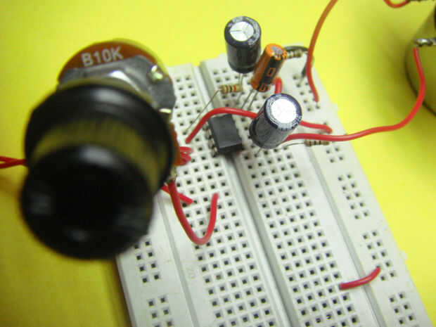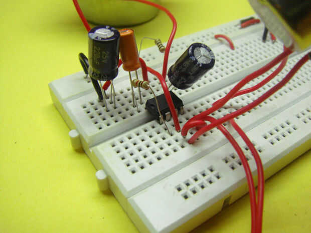Es bueno hacer el circuito en protoboard antes de soldar en perfboard. Que le ayuda a comprobar el circuito así como las partes. Si alguna parte no funciona correctamente, es bueno reemplazar ahora en lugar de hacerlo después de haber soldado todos los componentes en perfboard. Creación de prototipos también le ayuda a memorizar el circuito que minimiza los errores al tiempo que en perfboard. Para circuito diagrama mira el agregado de imágenes anterior. Prototipo el circuito en protoboard, encienda el amplificador y compruebe si todas las partes están funcionando correctamente o no. Vuelva a colocar la pieza que está funcionando mal. Use el mismo adaptador por el que se potencia sus productos finales con el fin de comprobar si el adaptador es capaz de suministrar la energía suficiente para su amplificador o no.
