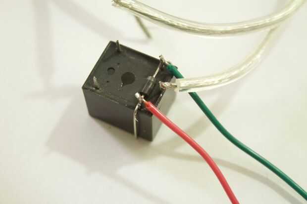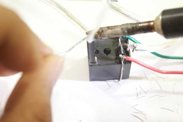 3. ahora toma el lado viniendo de la CA de entrada lateral (el lado que se conecta a la pared) y conecte el cable a la patilla central del relé (como se muestra arriba). Lo de la soldadura y cubra con cinta.
