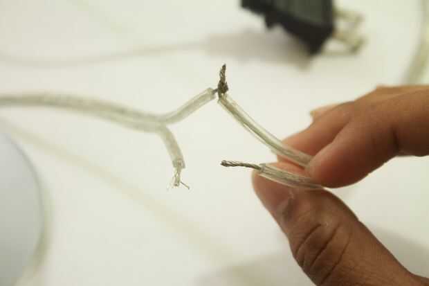 Ahora toma la luz y corte el cable en alguna parte alrededor de la mitad ya que tenemos que conectar el relé.
