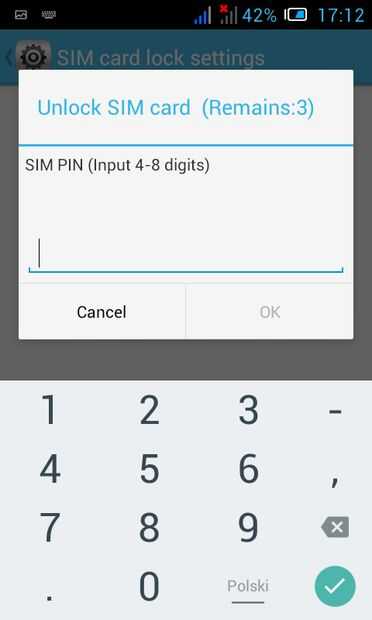 Para abrir la tarjeta SIM necesita conectarlo a su teléfono, vaya a ajustes -> Seguridad -> set hasta SIM bloqueo de la tarjeta -> tarjeta SIM lock Ingrese aquí su pin y oprima OK ahora la tarjeta SIM está abierta. Si quieres configurar pin otra vez ir al mismo lugar e introduzca el pin que te gustaría tener.