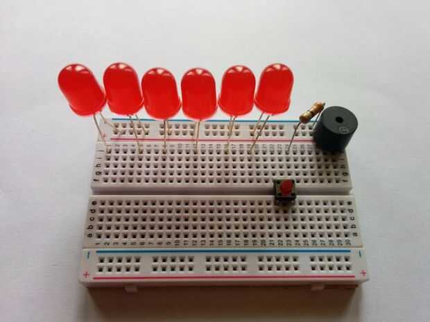 const int buttonPin = 2; // the number of the pushbutton pinconst int ledPin = 13; // the number of the LED pin const int led2Pin = 12; const int led3Pin = 11; const int led4Pin = 10; // the number of the LED pin const int led5Pin = 9; const int led6Pin = 7; const int led7Pin = 6; // the number of the LED pin const int led8Pin = 5; const int led9Pin = 4; const int led10Pin = 3; const int speakerOut = 1;// variables will change: int buttonState = 0; // variable for reading the pushbutton status int tastyTimeVariable = 0; // my time variable that has 1 added int i; int n;void setup() { // initialize the LED pin as an output: pinMode(ledPin, OUTPUT); pinMode(led2Pin, OUTPUT); pinMode(led3Pin, OUTPUT); pinMode(led4Pin, OUTPUT); pinMode(led5Pin, OUTPUT); pinMode(led6Pin, OUTPUT); pinMode(led7Pin, OUTPUT); pinMode(led8Pin, OUTPUT); pinMode(led9Pin, OUTPUT); pinMode(led10Pin, OUTPUT); // initialize the pushbutton pin as an input: pinMode(buttonPin, INPUT); pinMode(speakerOut, OUTPUT); delay(3000); }void loop(){ // read the state of the pushbutton value: buttonState = digitalRead(buttonPin); // check if the pushbutton is pressed. // if it is, the buttonState is HIGH: if (buttonState == HIGH) { // add to timer tastyTimeVariable = tastyTimeVariable + 1; digitalWrite(ledPin, HIGH); } else { } delay(1000); buttonState = digitalRead(buttonPin); if (buttonState == HIGH) { // add to timer tastyTimeVariable = tastyTimeVariable + 1; digitalWrite(led2Pin, HIGH); } else { } delay(1000);buttonState = digitalRead(buttonPin); if (buttonState == HIGH) { // add to timer tastyTimeVariable = tastyTimeVariable + 1; digitalWrite(led3Pin, HIGH); } else { } delay(1000); buttonState = digitalRead(buttonPin); if (buttonState == HIGH) { // add to timer tastyTimeVariable = tastyTimeVariable + 1; digitalWrite(led4Pin, HIGH); } else { } delay(1000); buttonState = digitalRead(buttonPin); if (buttonState == HIGH) { // add to timer tastyTimeVariable = tastyTimeVariable + 1; digitalWrite(led5Pin, HIGH); } else { } delay(1000); buttonState = digitalRead(buttonPin); if (buttonState == HIGH) { // add to timer tastyTimeVariable = tastyTimeVariable + 1; digitalWrite(led6Pin, HIGH); } else { } delay(1000); buttonState = digitalRead(buttonPin); if (buttonState == HIGH) { // add to timer tastyTimeVariable = tastyTimeVariable + 1; digitalWrite(led7Pin, HIGH); } else { } delay(1000); buttonState = digitalRead(buttonPin); if (buttonState == HIGH) { // add to timer tastyTimeVariable = tastyTimeVariable + 1; digitalWrite(led8Pin, HIGH); } else { } delay(1000);buttonState = digitalRead(buttonPin); if (buttonState == HIGH) { // add to timer tastyTimeVariable = tastyTimeVariable + 1; digitalWrite(led9Pin, HIGH); } else { } delay(1000);buttonState = digitalRead(buttonPin); if (buttonState == HIGH) { // add to timer tastyTimeVariable = tastyTimeVariable + 1; digitalWrite(led10Pin, HIGH); } else { } delay(1000); digitalWrite(led10Pin, LOW); digitalWrite(led9Pin, LOW); digitalWrite(led8Pin, LOW); digitalWrite(led7Pin, LOW); digitalWrite(led6Pin, LOW); digitalWrite(led5Pin, LOW); digitalWrite(led4Pin, LOW); digitalWrite(led3Pin, LOW); digitalWrite(led2Pin, LOW); digitalWrite(ledPin, LOW);delay(1000);if (tastyTimeVariable == 0) { }else if (tastyTimeVariable == 1) { digitalWrite (ledPin, HIGH); delay(300L * 1000L); for (i=0; i < 20; i++) { analogWrite(speakerOut,128); delay(250); digitalWrite(speakerOut, LOW); delay(250); } } else if (tastyTimeVariable == 2) { digitalWrite (led2Pin, HIGH); digitalWrite (ledPin, HIGH); delay(300L * 1000L); digitalWrite (led2Pin, LOW); delay(300L * 1000L); for (i=0; i < 20; i++) { analogWrite(speakerOut,128); delay(250); digitalWrite(speakerOut, LOW); delay(250); } //sound alarm }else if (tastyTimeVariable == 3) { digitalWrite (led3Pin, HIGH); digitalWrite (led2Pin, HIGH); digitalWrite (ledPin, HIGH); delay(300L * 1000L); digitalWrite (led3Pin, LOW); delay(300L * 1000L); digitalWrite (led2Pin, LOW); delay(300L * 1000L); for (i=0; i < 20; i++) { analogWrite(speakerOut,128); delay(250); digitalWrite(speakerOut, LOW); delay(250); } //sound alarm } else if (tastyTimeVariable == 4) { digitalWrite (led4Pin, HIGH); digitalWrite (led3Pin, HIGH); digitalWrite (led2Pin, HIGH); digitalWrite (ledPin, HIGH); delay(300L * 1000L); digitalWrite (led4Pin, LOW); delay(300L * 1000L); digitalWrite (led3Pin, LOW); delay(300L * 1000L); digitalWrite (led2Pin, LOW); delay(300L * 1000L); for (i=0; i < 20; i++) { analogWrite(speakerOut,128); delay(250); digitalWrite(speakerOut, LOW); delay(250); } //sound alarm } else if (tastyTimeVariable == 5) { digitalWrite (led5Pin, HIGH); digitalWrite (led4Pin, HIGH); digitalWrite (led3Pin, HIGH); digitalWrite (led2Pin, HIGH); digitalWrite (ledPin, HIGH); delay(300L * 1000L); digitalWrite (led5Pin, LOW); delay(300L * 1000L); digitalWrite (led4Pin, LOW); delay(300L * 1000L); digitalWrite (led3Pin, LOW); delay(300L * 1000L); digitalWrite (led2Pin, LOW); delay(300L * 1000L); for (i=0; i < 20; i++) { analogWrite(speakerOut,128); delay(250); digitalWrite(speakerOut, LOW); delay(250); } //sound alarm } else if (tastyTimeVariable == 6) { digitalWrite (led6Pin, HIGH); digitalWrite (led5Pin, HIGH); digitalWrite (led4Pin, HIGH); digitalWrite (led3Pin, HIGH); digitalWrite (led2Pin, HIGH); digitalWrite (ledPin, HIGH); delay(300L * 1000L); digitalWrite (led6Pin, LOW); delay(300L * 1000L); digitalWrite (led5Pin, LOW); delay(300L * 1000L); digitalWrite (led4Pin, LOW); delay(300L * 1000L); digitalWrite (led3Pin, LOW); delay(300L * 1000L); digitalWrite (led2Pin, LOW); delay(300L * 1000L); for (i=0; i < 20; i++) { analogWrite(speakerOut,128); delay(250); digitalWrite(speakerOut, LOW); delay(250); } //sound alarm } else if (tastyTimeVariable == 7) { digitalWrite (led7Pin, HIGH); digitalWrite (led6Pin, HIGH); digitalWrite (led5Pin, HIGH); digitalWrite (led4Pin, HIGH); digitalWrite (led3Pin, HIGH); digitalWrite (led2Pin, HIGH); digitalWrite (ledPin, HIGH); delay(300L * 1000L); digitalWrite (led7Pin, LOW); delay(300L * 1000L);