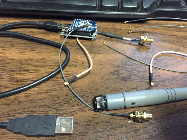 Pronto di cuenta de que tenía algunos módulos de X-bee que utiliza el mismo conector U.FL IPX. También tuve un montón de antenas wifi de accesos desechada y tal. Por suerte las coletas y la antena tenían juego conectores RP-SMA. Ya que tengo una robusta toda caja metálica para el producto terminado la antena tenía que ser externo.
