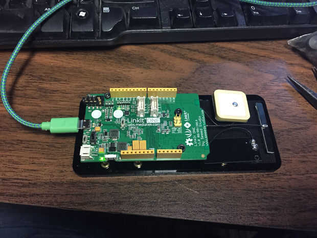Cuando yo primero desempaquetar Linkit uno era un poco peludo con las tira Junta antenas conectadas. Os adjunto a una tabla de proto de robot para mantener a raya a las antenas.