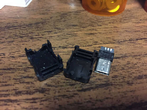 Usé un conector USB micro conectado a una clavija coaxial de corriente para conectar todo junto...