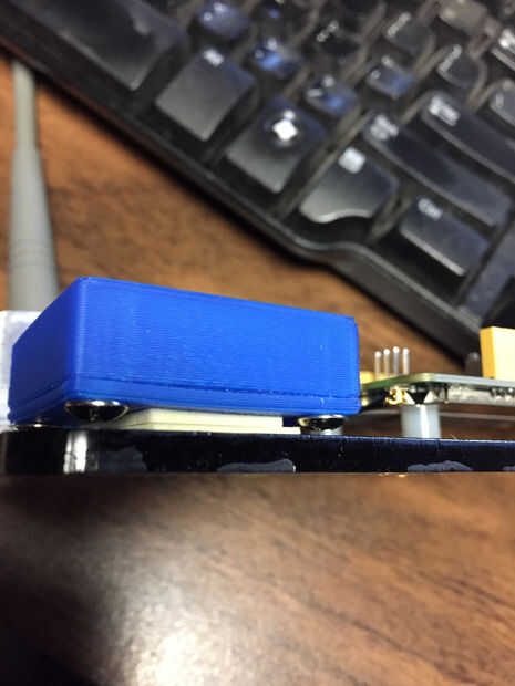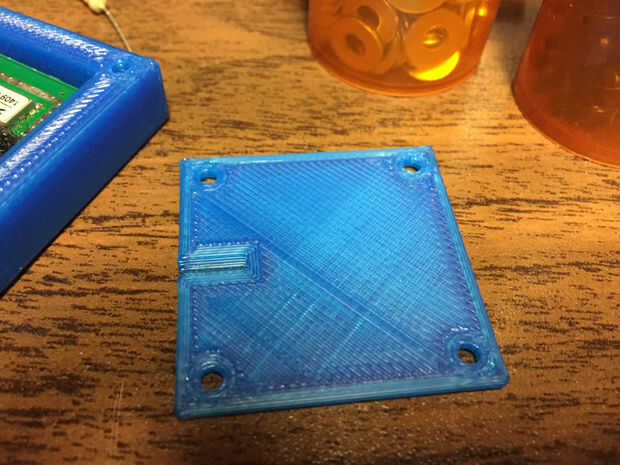 Justo después imprimí la parte decidí hacer una cubierta para la caja. De esta forma que se podría utilizar con mi placa proto. He añadido un alivio para el cable y esto hizo un bloque poco perfecto.