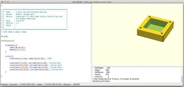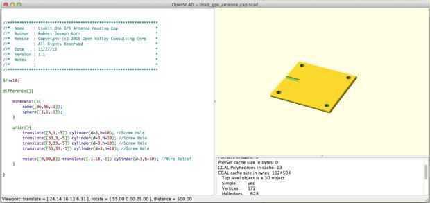 Hice esta cubierta simple. Mi plan original era montar el Linkit en la parte inferior de la tapa de la caja de un proyecto y y 5 agujeros en el patrón de la cara 5 en un dado derecho cerca del conector GPS. De esta manera los orificios exteriores 4 son para los tornillos de montaje y el agujero central para el cable de antena.