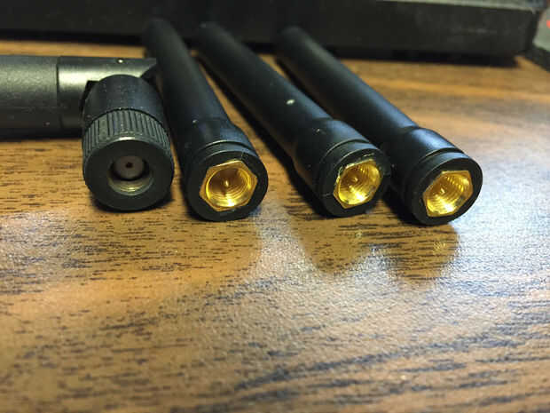 Antenas Wi-Fi utilizan lo que denomina una conector SMA de polaridad inversa. Todo lo que significa es que el pin del centro es en el lado opuesto del conector estándar SMA.