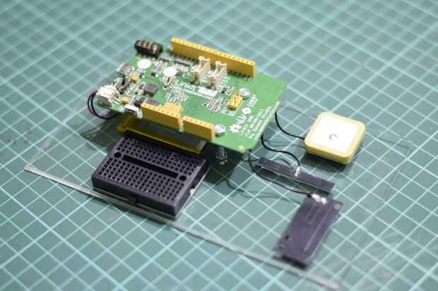 Esto es bastante simple. Corte una pieza de plexiglás de tamaño apropiado. Fui a 6 "x 4". Coloque Linkit uno tal que hay espacio para el montaje de la placa. Marque los orificios. Perforar y montar con tuercas y tornillos. Monte que hay espacio debajo de la batería. Pega la batería bajo con cinta y pegue las tres antenas así. Pegar la placa pequeña allí también.
