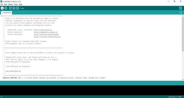 primero debe instalar la biblioteca de blynk a continuación, abra el enlace un código e introducir en el código: "#define ARDUINO 150" se debe ejecutar muy bien entonces!