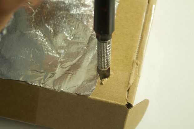 3. hacer un agujero al lado de uno de los bordes.