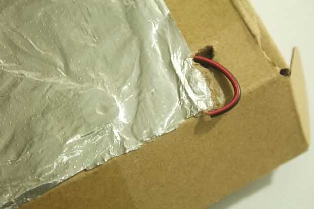 4. Ponga un alambre por el agujero y tira de una parte larga cerca de la lámina.