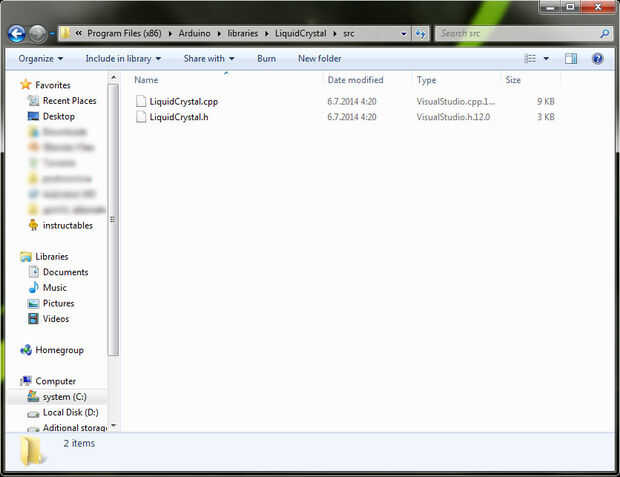 - descargar LiquidCrystal.h y LiquidCrystal.cpp (al final de esta ' ible)
