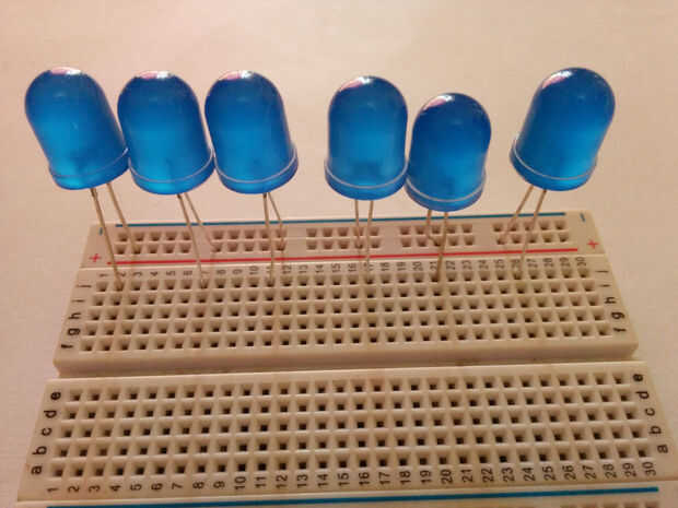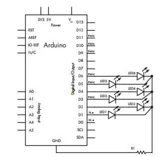 El circuito es bastante sencillo y puede encontrarse en la imagen de arriba. Todos los LED cátodo terminal está conectado juntos en una configuración de cátodo común. Y los ánodos de los LEDs están conectados al pin digital Linkit un 1 a 6. Si está usando bajo voltaje LED añade una resistencia de 330 ohmios en el cátodo y la terminal de tierra.