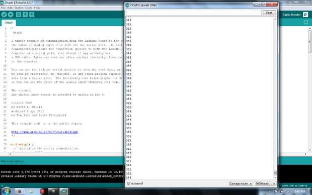 Puedes subir el sketch como es, cambios en el código no son necesarios. Para realizar la prueba, después de subir el sketch a LinkIt uno conectar la clavija media del bote en el pin analógico 0 en LinkIt uno como se muestra en el ejemplo. Las otras conexiones de pasadores son 5v y tierra. Una vez configurado interruptor desde el puerto de depuración en el IDE a su puerto de módem entonces basta con abrir el serial monitor y ver los valores cambian a medida que gire la perilla sobre el potenciómetro.