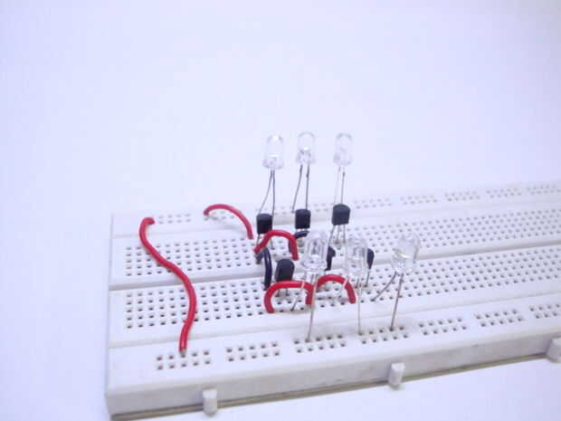Ahora es un paso importante. Tienes que conectar los seis LEDs de linkit uno con un transistor para cada uno. Siga las imágenes arriba para referencia. Los pernos digitales que tienes que usar son pines 2-7.
