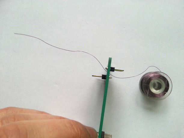 Hice que utilizando un cable que tenía aislamiento fácilmente se desvaneció con el hierro de soldar (todos los cables que no están envueltos en espesa cáscara plástica son tales) aislado.