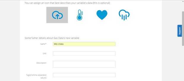 Después de "agregar Variable" y nombre de la variable "MQ 2 datos", haga clic en crear.