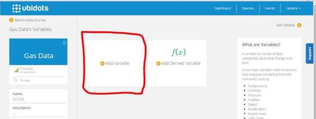 Ahora tenemos una fuente de datos llamada "Datos de Gas". A continuación lo que tenemos que hacer es crear una nueva variable de datos haciendo clic en el cuadro de "Datos del Gas" que tenemos a crean.