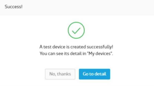 Paso 13: Haz clic en el botón "Crear dispositivo de la prueba", rellene el nombre y haga clic en "Ir a los detalles"