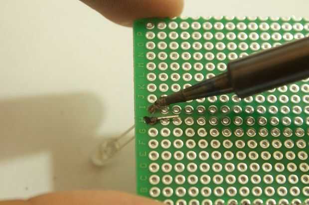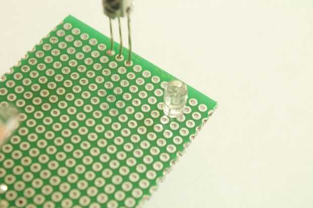 3. Suelde la resistencia al pin positivo de los LED IR.