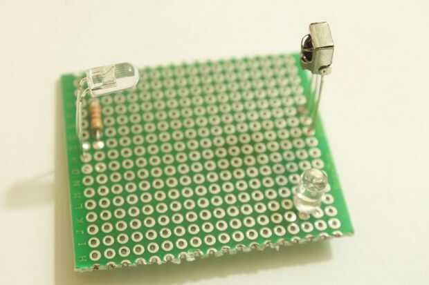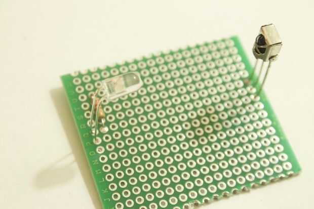 2. luego en el lado opuesto de la soldadura el LED IR en tal que apunte hacia el sensor de infrarrojos. (cuanto mayor sea la distancia entre ellos más espacio se llega a detectar el objeto)