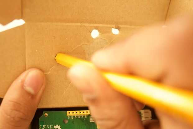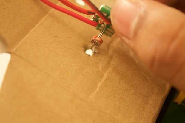 2. pegue el fotorresistor a la base de la tapa de la caja. (Cualquier lugar donde la luz de su habitación suficientemente golpea la caja.
