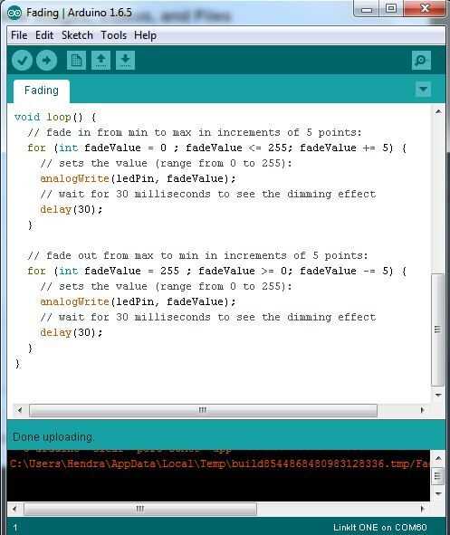 cuando su hacer se verá el LED empieza a desaparecer y luego vuelve a encenderse otra vez en un bucle.