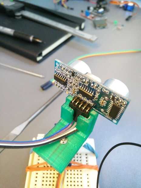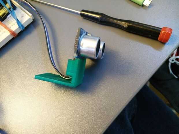Si no tienes una impresora 3D, que usted puede fácilmente doblar sólo algunos (caja de Cereal) de cartulina o cartón para hacer una forma de "L" y luego uso caliente derretimiento pegamento para unir los conectores hembra que se conecta el dispositivo de sonar a. (Ejemplo de la forma que se muestra arriba con papel) Usted puede entonces sólo corte/poke un pequeño orificio en el soporte para el tornillo recorrer.